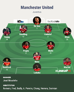 CONFIRMED MANCHESTER UNITED STARTING XI vs JUVENTUS Tuesday, October 23, 2018 The team sheets are out. Check out the starting XI José Mourinho has chosen to take on the Ronaldo-led Juventus. What are your thoughts on José's selection? Stay tuned to ManUtdNaijaFM for post match analysis. GLORY GLORY MAN UNITED. Share Get link Facebook Twitter Pinterest Email Other Apps Labels Manchester United UEFA Champions League Share Get link Facebook Twitter Pinterest Email Other Apps